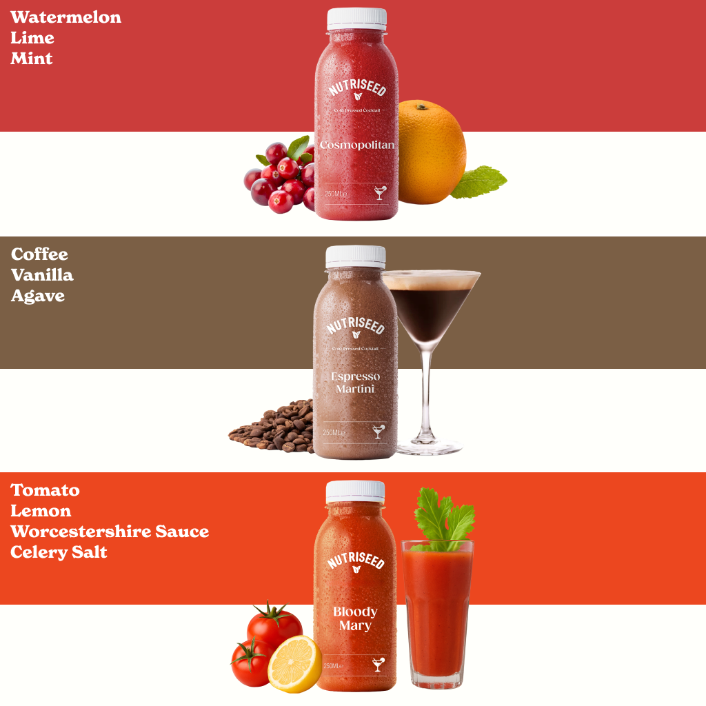 Coffee, Vanilla, Agave, Watermelon, Lime, Mint, Strawberry, Apple, Orange, Cucumber, Mint, Lime, Cucumber, Apple, Mint, Tomato, Lemon, Worcestershire Sauce, Celery Salt.