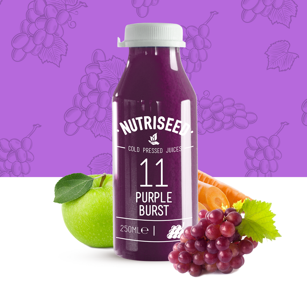 Apple, Grapes, Orange, Cabbage, Carrot, Lime, Ginger.|Exploding into the range in a riot of colour, Purple Burst is a taste sensation that takes you totally by surprise. Rich and sweet, with a subtle tang - like summer in a bottle! ---