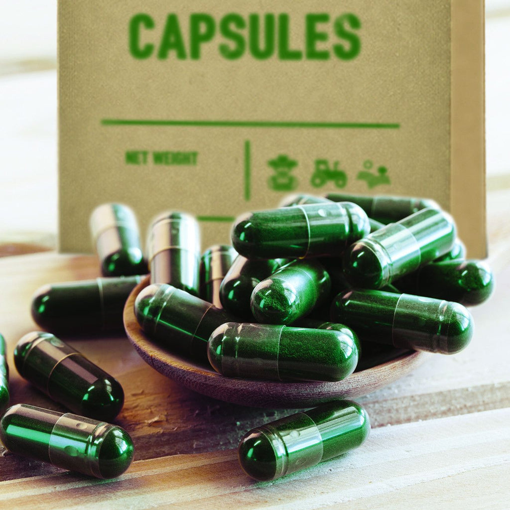 Each bag of Spirulina Capsules is hand-packed, hand-sealed and hand-stamped for maximum freshness in our iconic re-sealable, foil-lined bags.