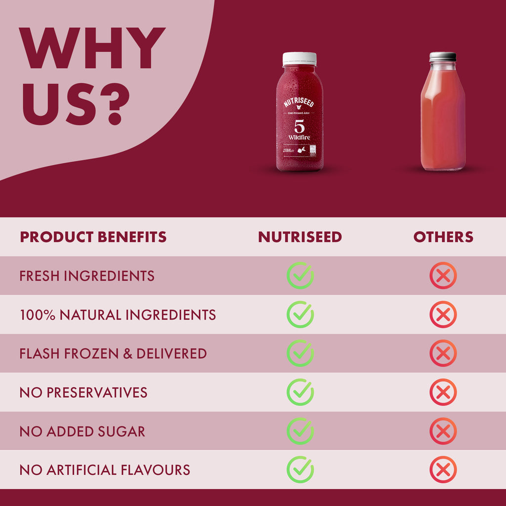 Wildfire is here to cleanse you from the inside out. Flushing out toxins, and supercharging the immune system, our Wildfire juice will leave you feeling refreshed and recharged for the day ahead.
