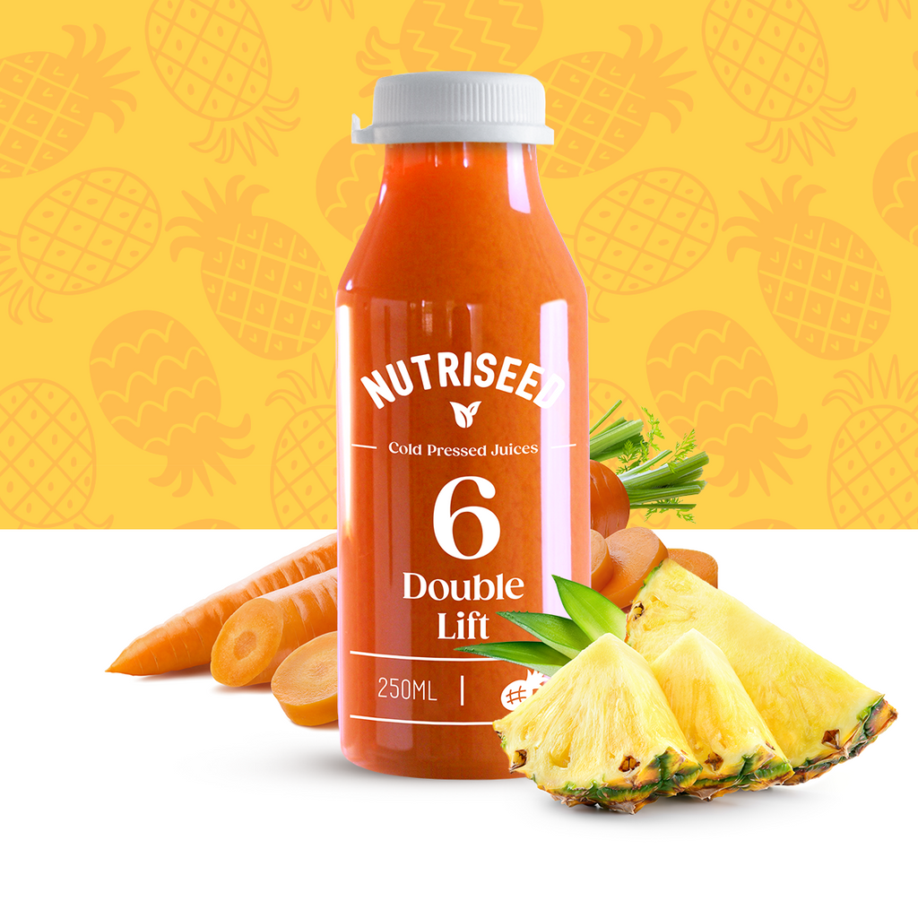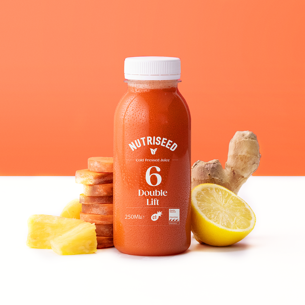 Carrot, Apple, Pineapple, Ginger, Beetroot and Lemon | Double Lift really lifts the spirits and tickles the tastebuds - definitely our favourite “Mocktail”. This fabulously fruity treat certainly lives up to its name ---