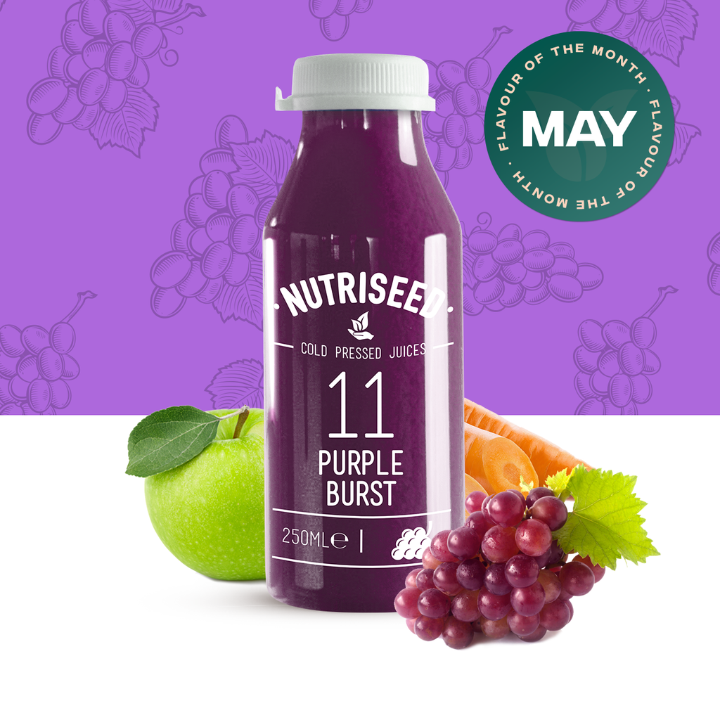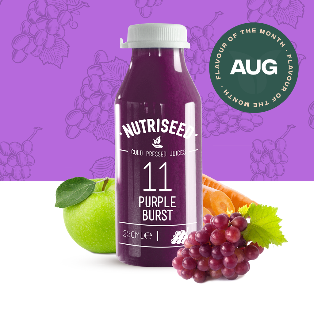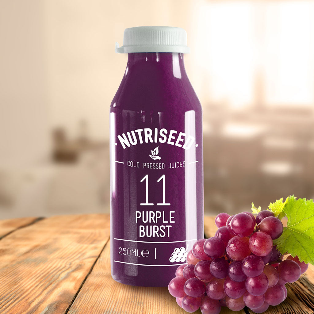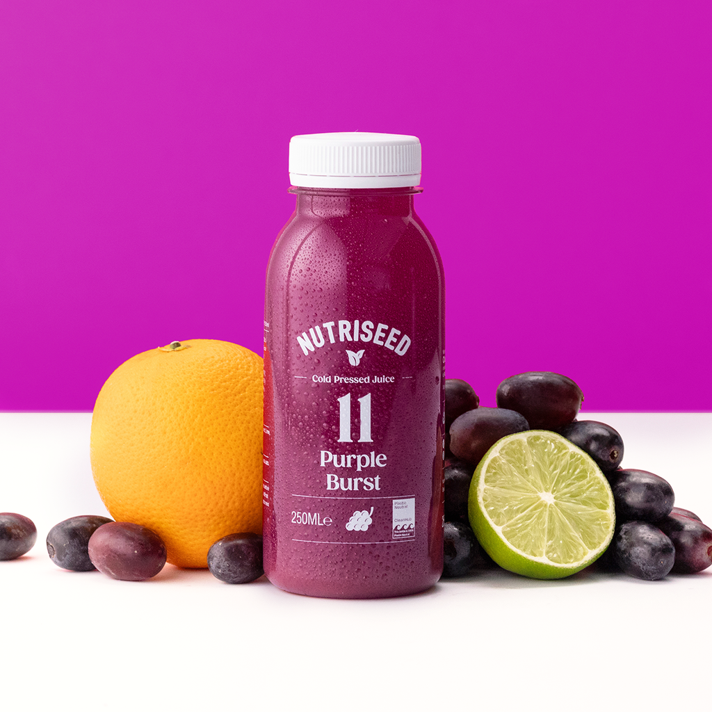 Apple, Grapes, Orange, Cabbage, Carrot, Lime, Ginger.|Exploding into the range in a riot of colour, Purple Burst is a taste sensation that takes you totally by surprise. Rich and sweet, with a subtle tang - like summer in a bottle! ---