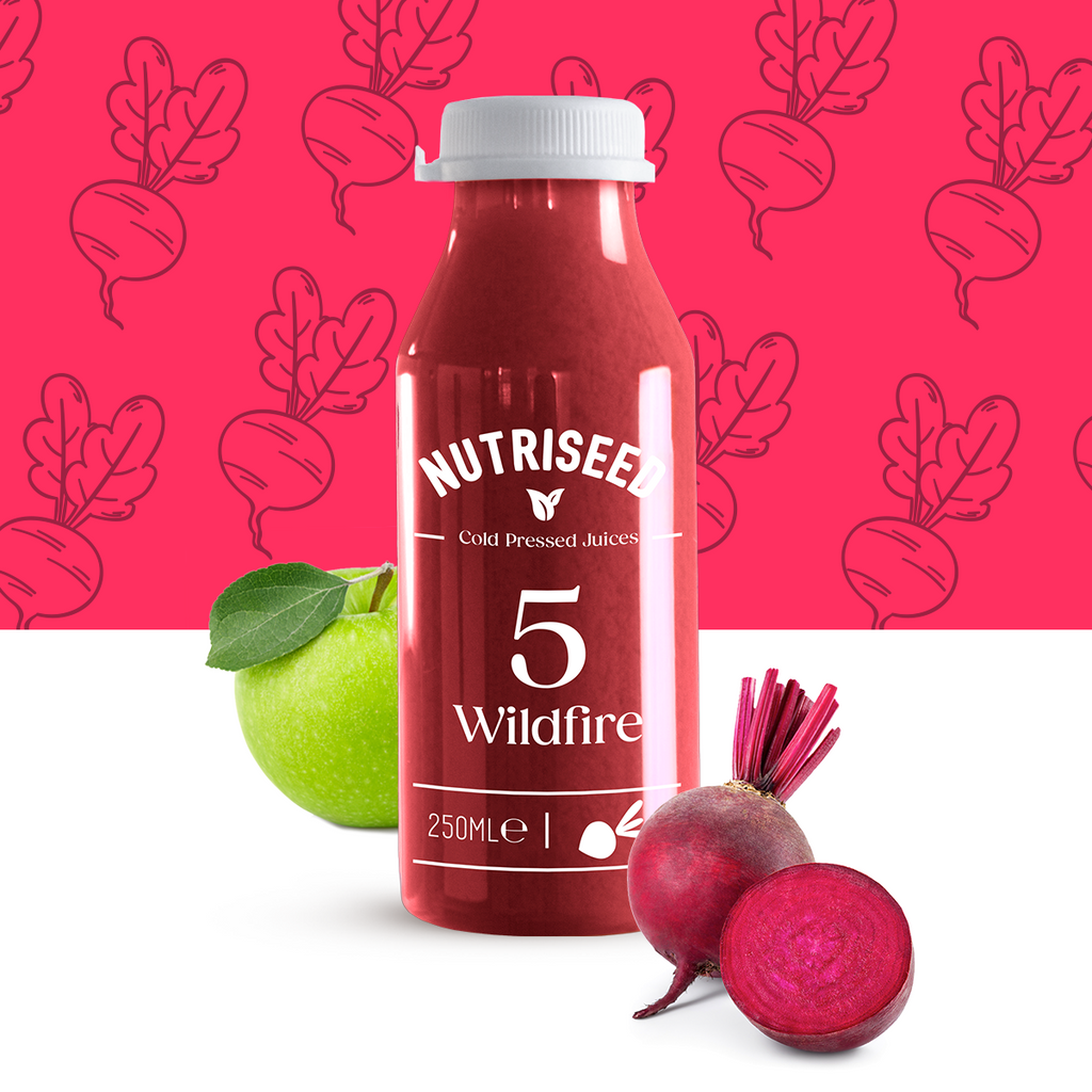 Beetroot, Celery, Apple. | Wildfire is here to cleanse you from the inside out. Flushing out toxins, and supercharging the immune system, our Wildfire juice will leave you feeling refreshed and recharged for the day ahead.