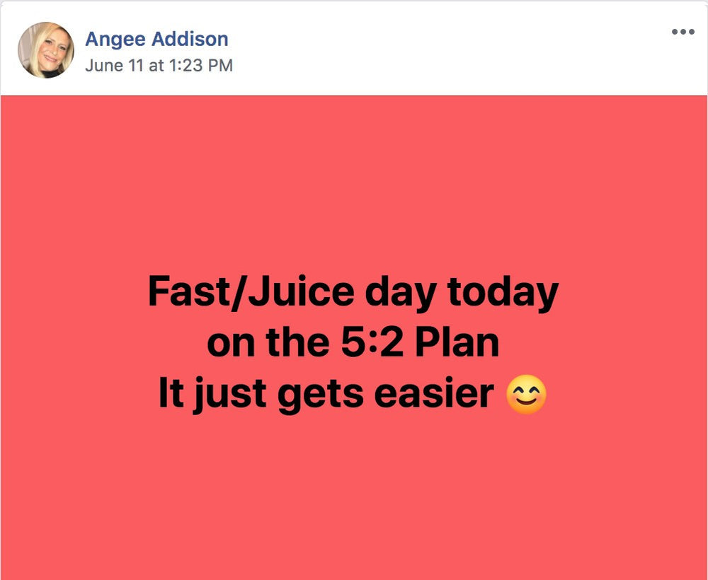 A 5:2 programme is what it says, but there is absolutely no reason why you couldn’t step up to 4:3 to boost your weight loss if you’d like to, as many people do. However, remember that to enjoy the weight loss boost of intermittent fasting, it is important to alternate between fasting and non fasting days to maintain that metabolic confusion. 2 juice days or 3 - only you can decide what you can genuinely commit to - to realise your goals.