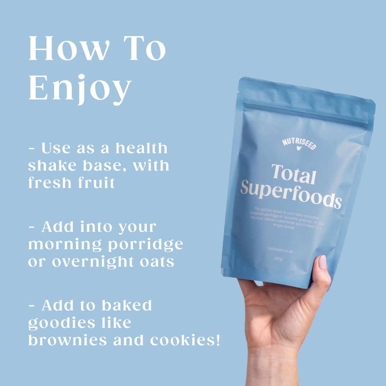 Total Superfoods is Nutriseed’s signature blend of some of the world’s most renowned superfoods, fuelling your goals and workouts with earth-grown nutrition. Ideal as your everyday health shake base, and what’s more, working out to just 99p per serving, it's cost-effective and convenient too.