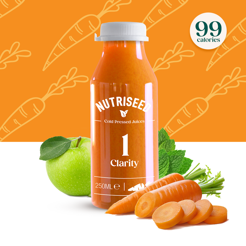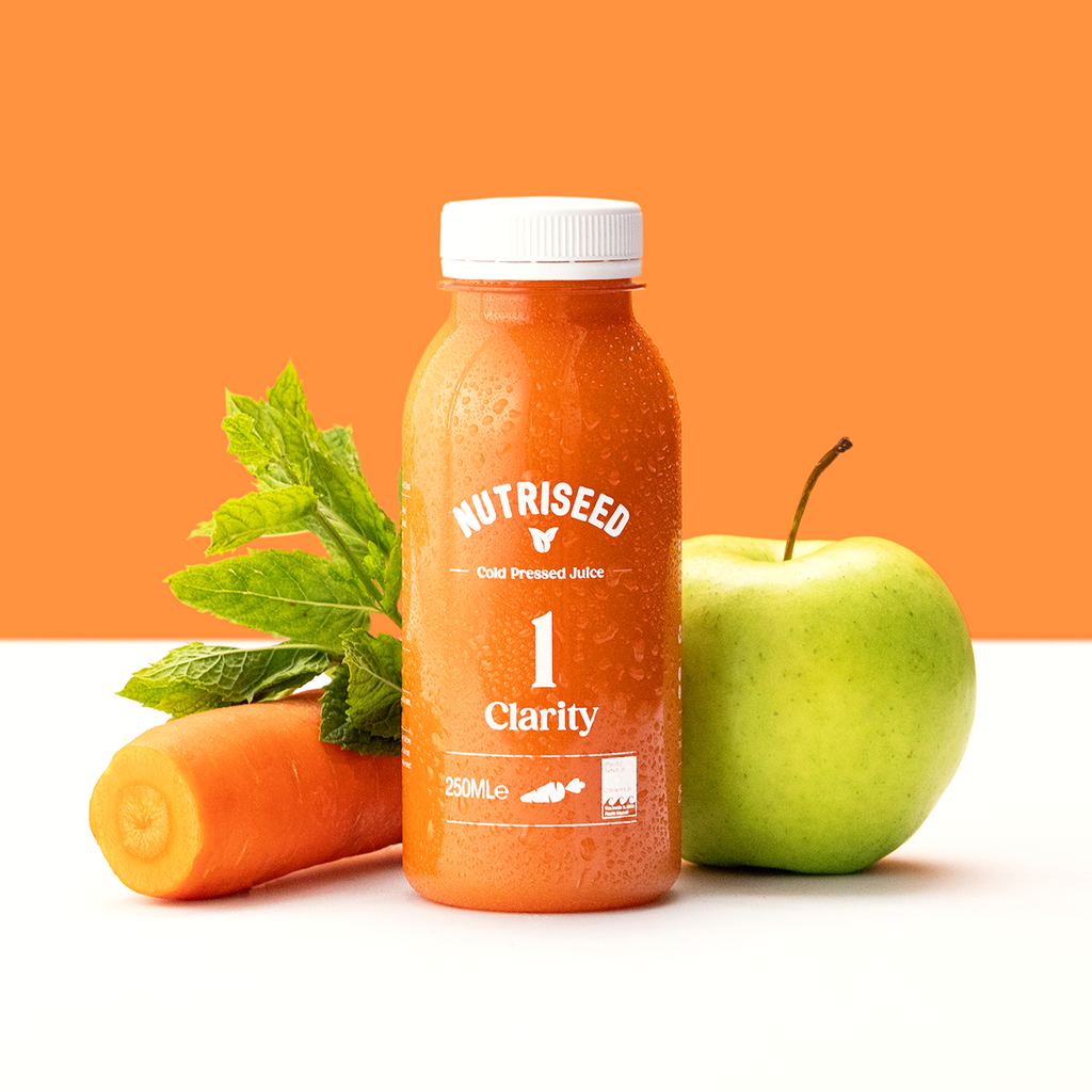 Carrot, Apple, Mint. | Put a bit of oomph into your morning with our Clarity, a great way to get your day off to a fabulous flying start! ---