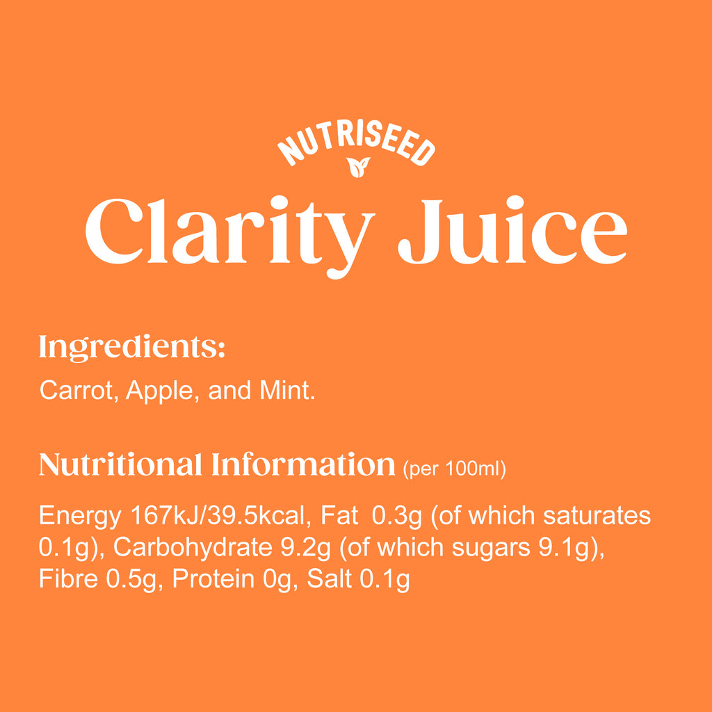 For those looking to manage their weight or embrace a healthier lifestyle, Clarity is your perfect companion. This refreshing blend of carrot, apple, and mint is packed with nutrients, offering a flavourful boost to keep hunger at bay and energise your day.
