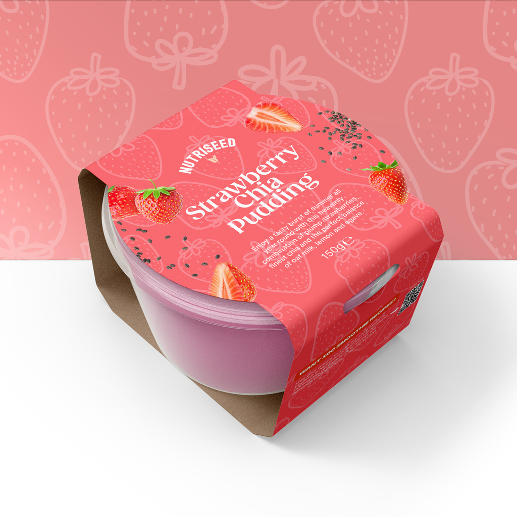 Oat M*lk, Strawberry, Chia Seeds, Agave, | Our all new Strawberry Chia Pudding packs a powerful flavour punch of your favourite fruit all year round. The fabulously filling addition of the finest Chia seeds adds a special twist with their unusual texture… soft little pearls of yumminess with a subtle crunch at their core!---
